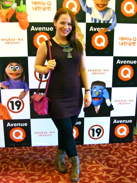 Dressing for a weekend in Seoul can be kind of a pain in the neck sometimes. Especially with the weather that we've had lately. SO SO SO humid and rainy and mostly hot except when the wind hits you just right. Waking up early on a Saturday morning - especially after a wine & cheese ladies night - isn't my forte so this is what I grabbed in a hurry. Wanted something cute, comfortable, and functional. Because of the rain, I wanted to wear my new boots and this dress is too short not to wear something underneath it, hence the leggings. It's a Korean dress so it wasn't exactly made for ladies with a derriere. I also picked this dress because it could go from day to night. I had packed wedge heels and fuchsia tights to change into later but we ended up not going to a club, instead opting for a hole-in-the-wall pub. To finish off the look, I added one of my favorite necklaces. It's from this amazing boutique in Little Five Points, Atlanta called Cultural Acc'nts which sells beautiful African-inspired jewelry and clothes.